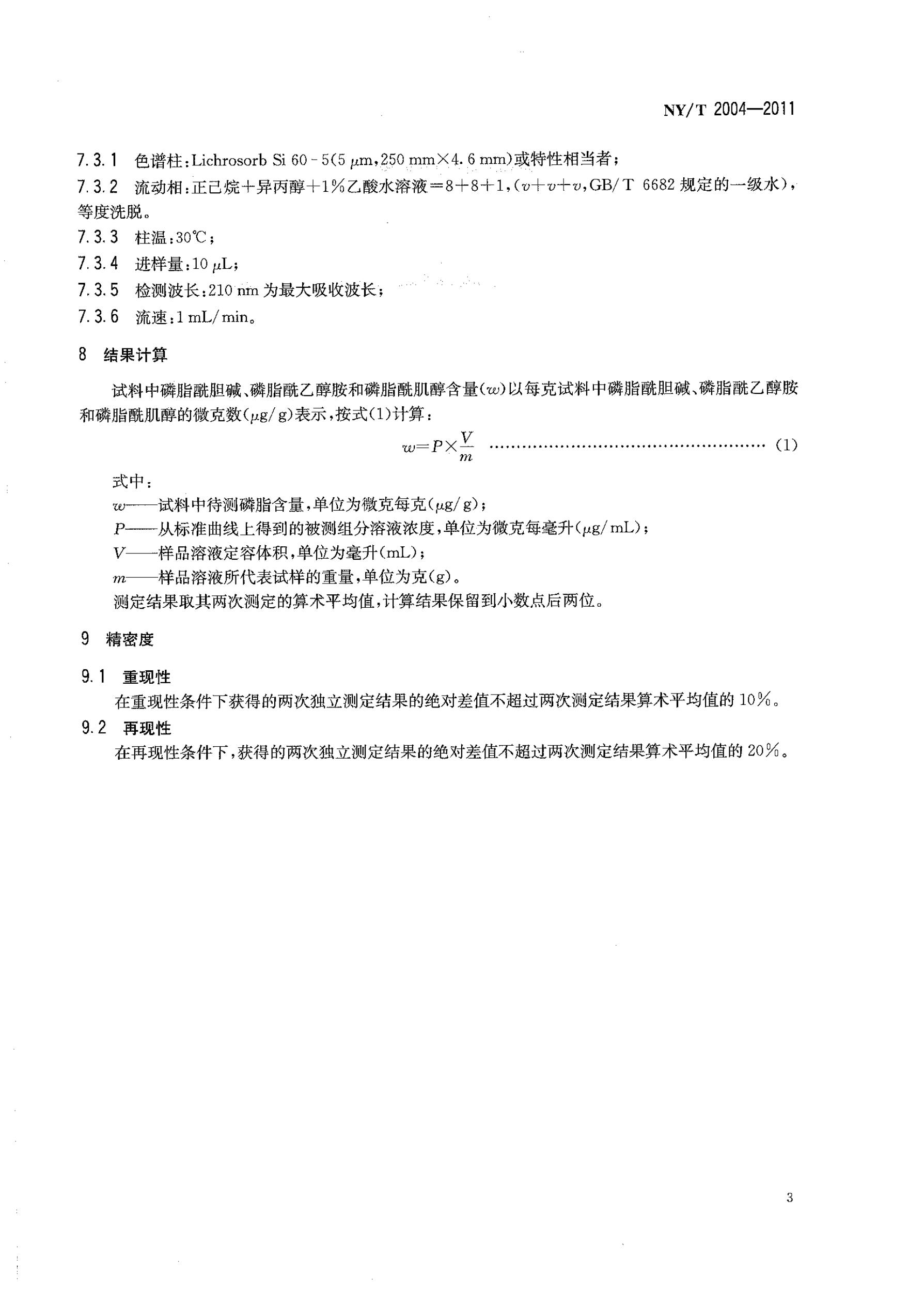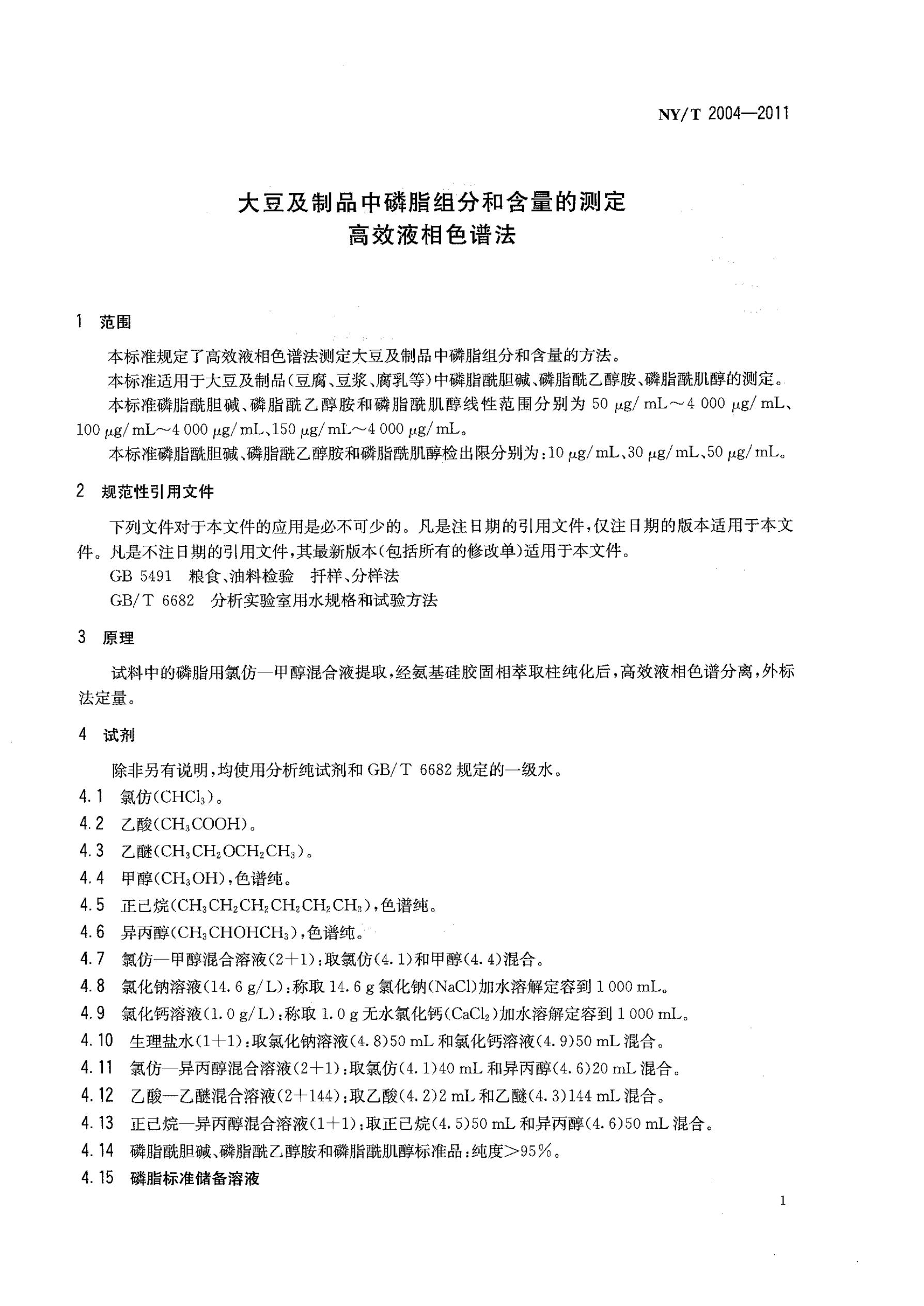 大豆及制品中磷脂組分和含量的測(cè)定NY/T 2004-2011